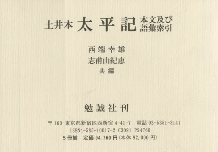 ◆◆土井本太平記本文及び語彙索引 5冊セット / 西端 幸雄 他編 / 勉誠出版