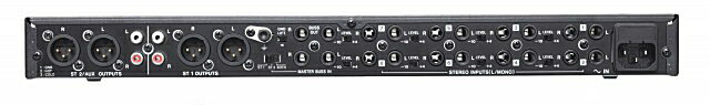 ■各出力バスには、4ドットの出力レベルメーターを装備 ■ST 1バスおよびST 2/AUXバス出力にMONOスイッチ装備 ■BUSS OUT端子とMASTER BUSS IN端子を使って、8ステレオチャンネル毎の増設が可能 ■1/4インチ(6.3mm)および1/8インチ(3.5mm)、250mW 250mWヘッドホン出力端子を装備 ■全チャンネルのシグナルグランドとシャーシグランドを一度にオン/オフできるグランドリフトスイッチを装備 ■簡単なヒューズ交換